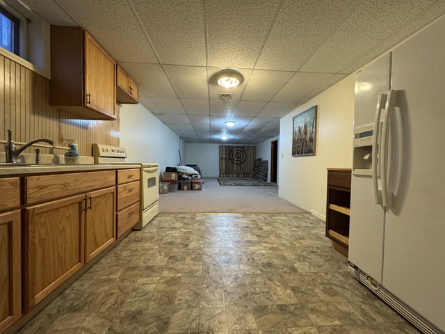The basement provides a separate living space with one bedroom, a full bathroom featuring a jetted tub/shower combination, a large living room, a kitchen, and a storage room. The mechanical room is separate from the apartment and offers additional storage space.