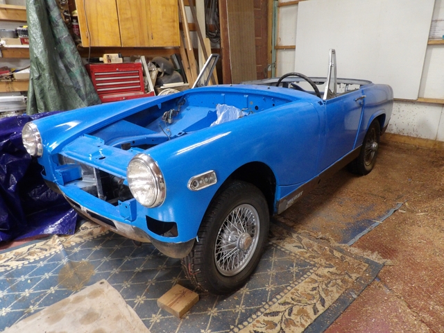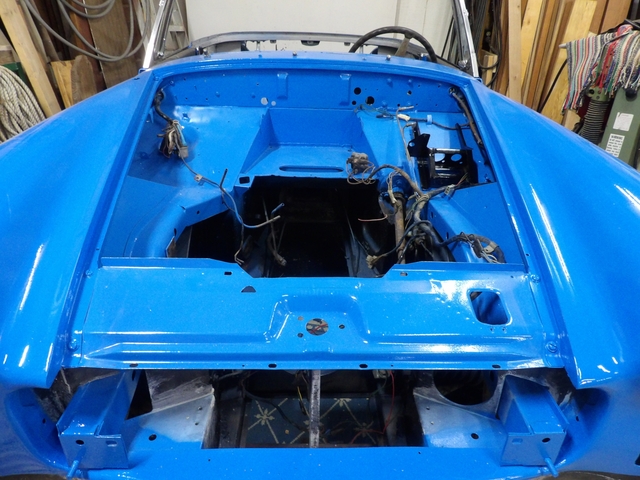 HAPPY NEW YEAR, Need a new project for a new year ???, 1975 MG Midget. I fell off a ladder last Christmas and injuired my right hip and knee, all though I can now walk without a cane, that side does not bend right anymore and I’m not going to be able to finish this. A package deal of everything MG, It was painted a little over a year ago and has not even been rubbed out yet, plus extra paint is included. A rust free wire-wheel car with title, $ 4,000 I got the car without an engine, I than got 2 rust/bucket late 60’s parts cars. Both had complete 1275 cc engines, one had wire wheels so I removed the rear end leave springs and all and I cut off the entire front suspension. So there is at least 2 of everything, plus extra fenders, doors, fuel tanks, radiators, seats {1 set is not good} dash boards, extra wire harness, extra wire wheels, mounted 4 new tires and tubes, 2 windshields,1 is perfect and the other is just a good frame. Too much to list… The engines are # 12v/671z/L17371 {this one I think just needs rings} and # 12v/671z/L 801 {this one I would bore and put a hot cam in} There is gasket sets for both engines, both heads have been hot tanked and resurfaced, valves have not yet been done. Both engines are complete with SU Carbs starters, distributors, alternators, everything… including transmissions and drive lines. 2 hoods, 2 trunk lids, 2 top frames, 2 sets of seats, 1 good top and cover, A few of these pics inside were taken today, I was going to make a wood dash, the interior panels were removed for painting and are not in bad shape. Anyway, located in Kensington, Ks, 66951