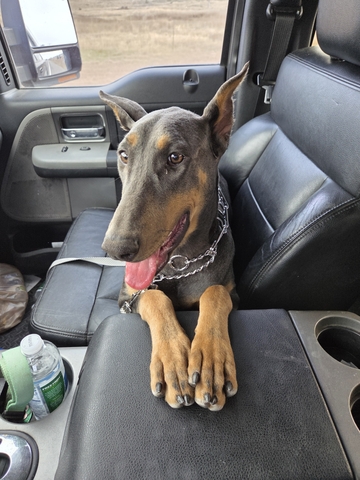 I have a 1 year old blue female Doberman to rehome. Unfortunately, her joining our family, was just not well thought out at all. She's very capable of learning shes just......a doberman..! The dogs don't currently have free roam of the house as we have a newborn and multiple projects going so I'm unsure if she would be house trained. But she is kennel trained. She is UTD on all shots and her ears have been cropped. She will come with her kennel, a leash, collar, prong collar, a new ID tag custom to you, a bark collar, a bag of food, and a bowl. She will walk on a leash but definitely needs work. She hasn't had socialization outside of our family but once you have a chance to pet her, she loves EVERYONE. She is also a one year old Doberman..so she has lots of energy!