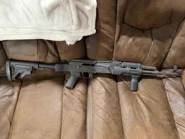 Cugir AK Romanian with folding stock and Magpul grip+foregrip. Comes with however many 30rd mags you want. Open to trades or cash offer.