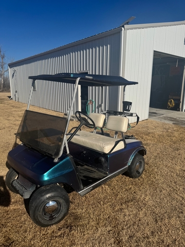 Club Car DS gas. I’ve had this cart for almost 10 years. The paint is from dipyourcar, it’s a peelable paint, similar to a wrap, easy to replace if you wanted to go a different route. I replaced shocks and throttle cable in 2025, and stator in 2022. USB Charger and Battery meter installed on dash with extra cup holders. Serviced every year before golf season. Comes with a new windshield as well. Been a good cart just going to upgrade.