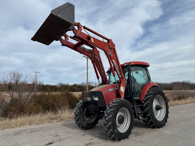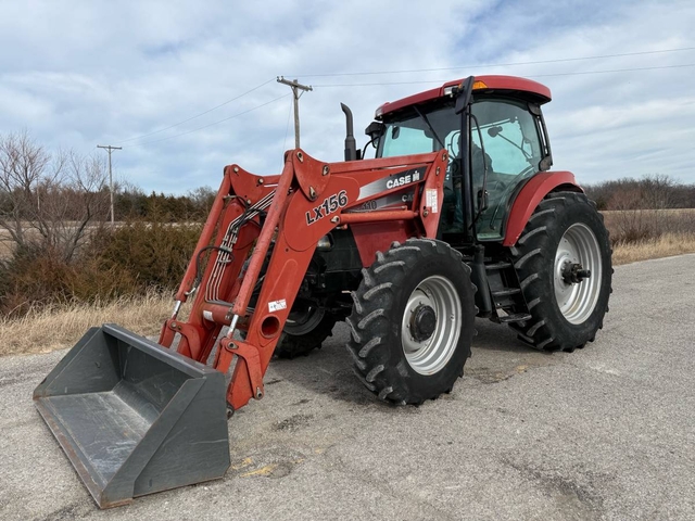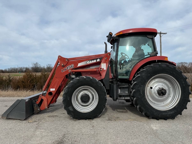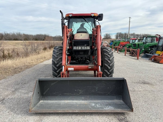 115 HP, 24-speed transmission with left hand reverser, 3pt, dual PTO, triple hydraulic remotes, 4 wheel drive, cab with heat and air, buddy seat, sunroof and air ride seat, LX156 self-leveling loader with global style quick attach bucket and joystick with single point hydraulic hook up. This tractor runs and operates very good. All four tires are very good. The hour meter is showing 292 hours, we cannot verify that the hours are correct. We believe it has more hours on it than that and the meter has been replaced. This does not appear to be a high hour tractor. The paint on the top of the hood is a little faded but this is a nice pre-emission tractor that we believe is fairly low hours. Shipping is available anywhere in the United States. Please call us at 620-736-2038 for more information or to come look at it. Also, please visit our website at www.riggstractorcompany.com to view our current inventory.