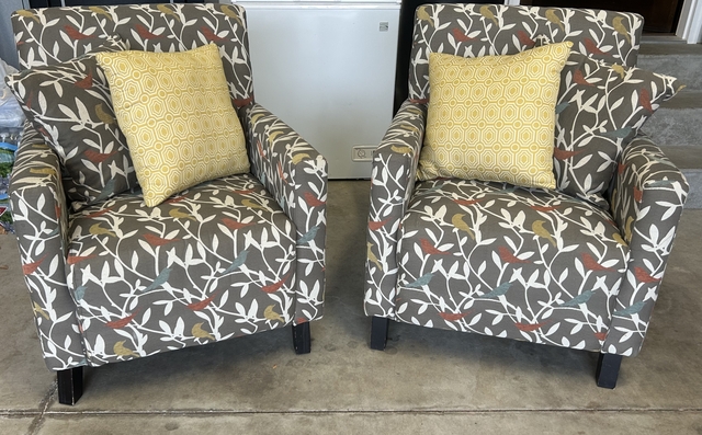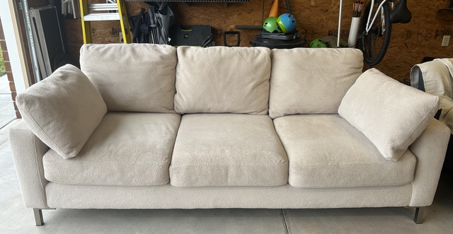 Great quality furniture in good shape. Cream sofa, $200. Navy loveseat, $150, Pair of chairs and pillows, $150. No smoking home. Cash only. Prices firm. No delivery.