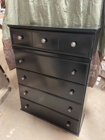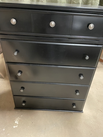 Very sturdy and well built black five drawer dresser/chest. Very good condition. Cash only at pick up.