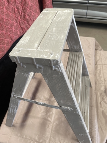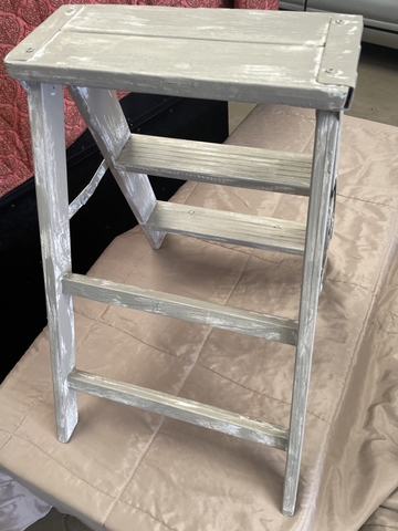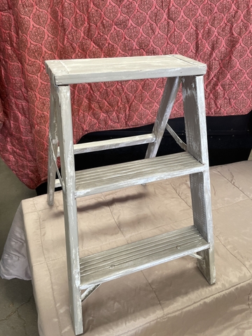 Vintage small step ladder. Very sturdy to use, or could use to place plants/decorations on. Painted with a distressed finish. Cash only at pick up.