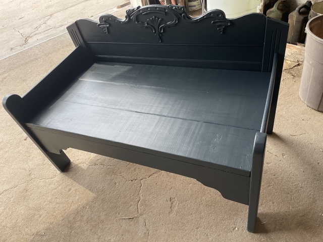 This bench is made from an antique bedframe. Looks great to drape a blanket over with a pillow or two. Very heavy and very sturdy. Cash only at pick up.