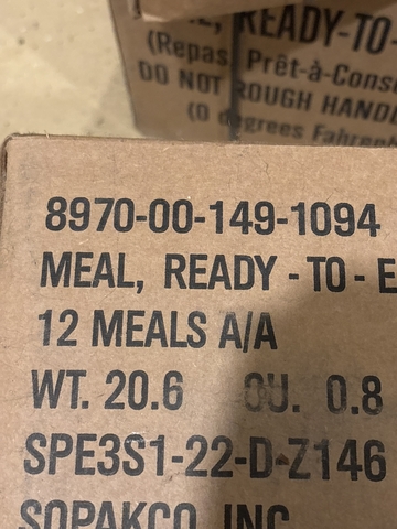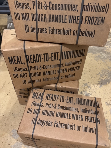 4 boxes of MRE's (Meals read to eat). Each box has 12 meals.