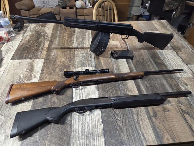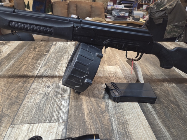Russian made 12ga automatic with a 20 round drum and 7 round clip $600
