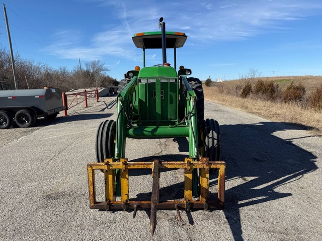 85 HP, 16-speed transmission, 3pt, dual PTO, dual hydraulic remotes, 2-post ROPS with canopy and JD 148 loader with bale spear. This is a very nice, clean tractor with 6,600 hours. Shipping is available anywhere in the United States. Please call us at 620-736-2038 for more information or to come look at it. Also, please visit our website at www.riggstractorcompany.com to view our current inventory.