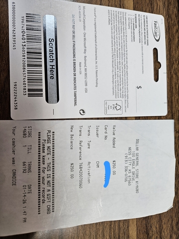 Brand new gift card with receipt $250 is on it. $200