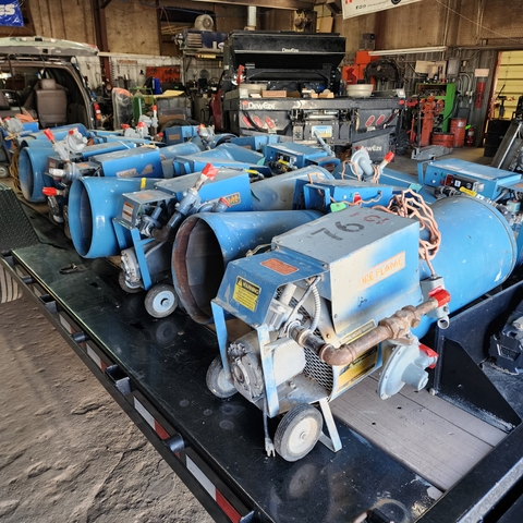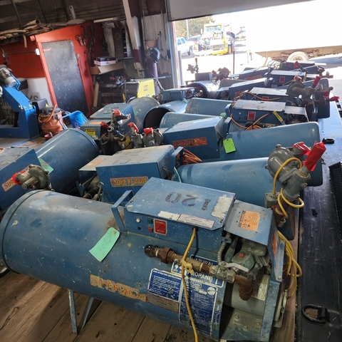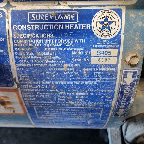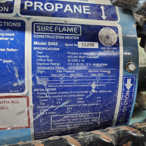 Sure flame s405 construction heaters, 400,000 btu units. These have the transportation wheel kit, and remote thermostat kit also
