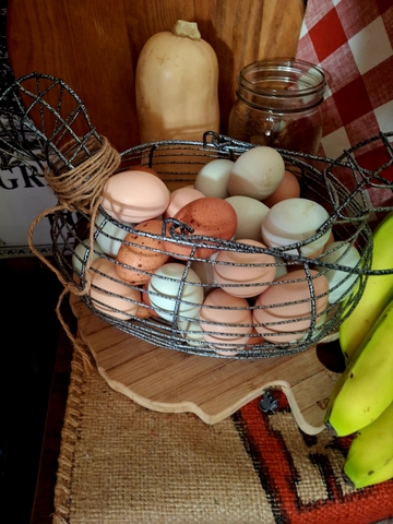 6 hens 1 year old this month, an a laying big eggs, french coppers, colombians, cinnamon queens, and various other breeds ...free rooster🐓