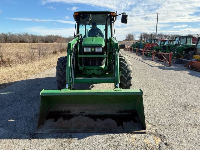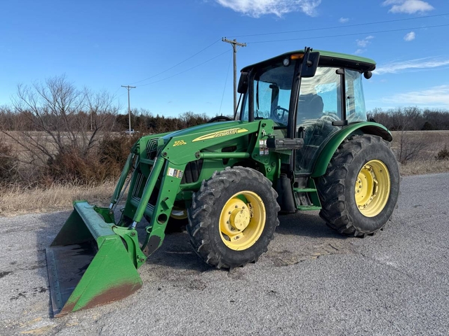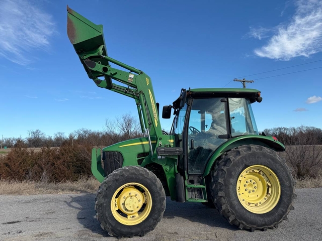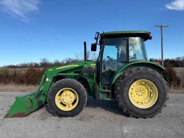 85 HP, 16-speed transmission with left-hand reverser, 3pt, 540 PTO, dual hydraulic remotes. This 4-wheel drive has a cab with heat & air, JD 553 loader with quick attach bucket and joystick, pre-emission. This is a local trade-in, runs & operates good and has been used in the hay field for the last several years. 7260 hours. Shipping is available anywhere in the United States. Please call us at 620-736-2038 for more information or to come look at it. Also, please visit our website at www.riggstractorcompany.com to view our current inventory.