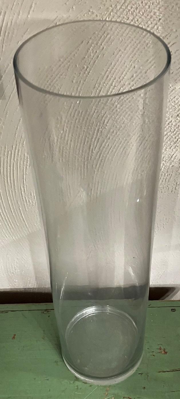 Clear Glass Vase, right at 20" tall and 5" diameter.