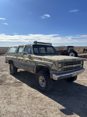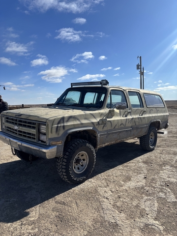 1987 Chevy Suburban 1500. 350 Chevy TBI Auto transmission 4wd . Runs and drives very good. Cruises 70 down road no problem , 4wd works great , tranny shifts good. New water pump. Brand new tires, gun rack overhead. Heat works good, all gauges work. LED headlights and light bar. No leaks, perfect hunting wagon. 3700 obo 785 six5seven 70ninefour
