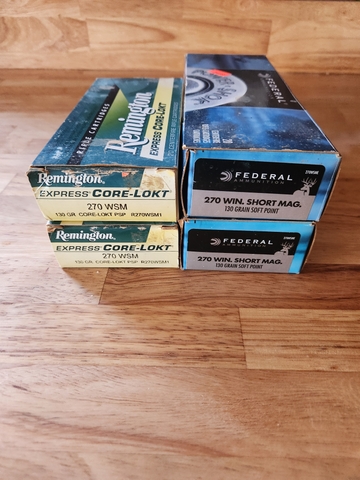 2 Boxes of remington and 2 Boxes federal 270 short mag 130gr $140 for all 4 Boxes pick up in lyons call 360 7512720