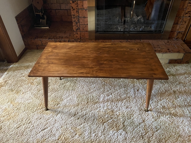 Nice, sturdy antique coffee table. Solid wood. Appear to be maple. Possibly birch. 50.00 OBO.