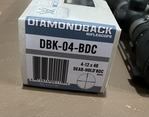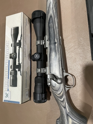 Vortex Diamondback 4-12x40 Scope w/BDC reticle mounted w/stainless Ruger rings and sighted in.