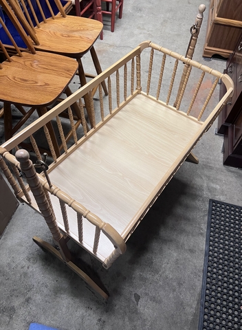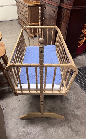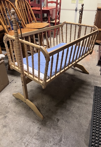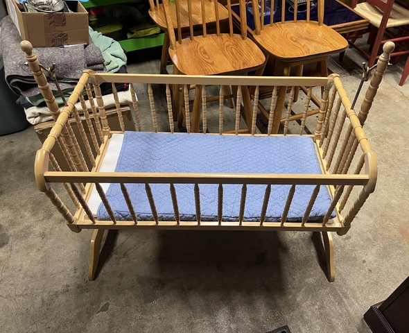 Would be perfect for Baby Toy Dolls.....Have an older but Solid built Rocking Baby Cradle W/Stand and removable pad. Cradle can be removed from stand for moving purposes. Measurements are 42” Wide, 22” Deep, 38” Tall, Cradle itself is 16” Off Ground. (NO HOLDS)(No Deliveries)(CASH ONLY) LOCATED IN HAYS, KS