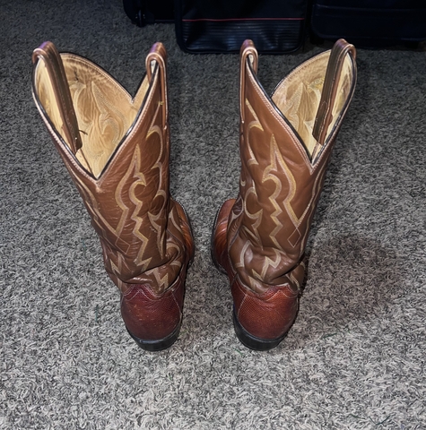 Have a Nice pair of Exotic Mens Tony Llama “Lizard” Cowboy Boots in a size 9 1/2 D with round tip. These are lightly used but still in very good condition. These are not cheap boots, very quality boots. (NO HOLDS)(No Shipping)CASH ONLY) LOCATED IN HAYS, KS REDUCED)