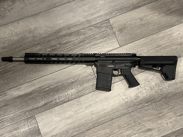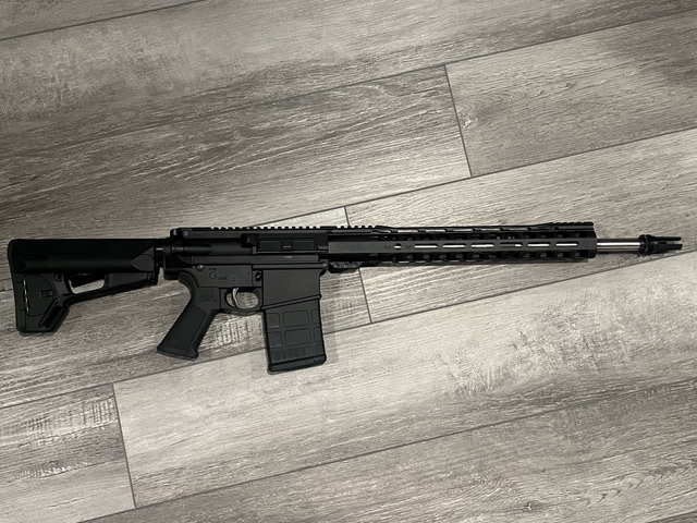 Palmetto Ar-10 in 308 with an 18" stainless barrel. It has an adjustable gas block, magpul acs stock, Vltor extended charging handle and a silencerco 3 prong asr quick detach muzzle device. Will come with one 20 round pmag. Excellent condition. No trades. Price is firm. Pick up in Great Bend.
