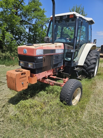This is a New Holland 6640, it says 5,253 hours which is belived to be correct, its been sitting for a couple years, its a 2wd with a front set of weights, cabs in rougher shape.