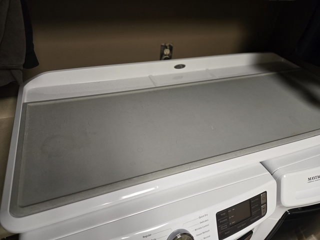 Also comes with flat top to protect top of washer and dryer, fold clothes, iron clothes ect