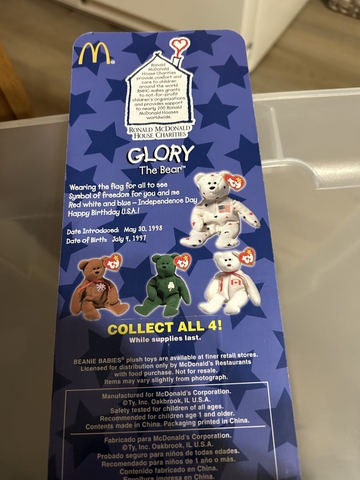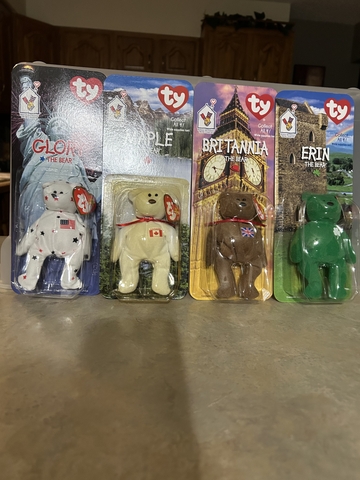 They come 4 to a set. Glory-USA, Erin-Irish, Maple-Canada and Britannia-Union Flag. I have 4 sets of 4. Selling for $10.00 a set of 4. Questions call or text 785-743-2545. Cash Only