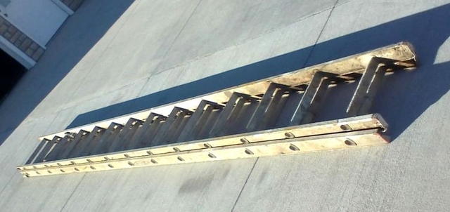 25’ Aluminum Extension Ladder - $150.00 Used extension ladder. Each single section is 14’ long x 15” wide. Other than being a little dirty & the rope is missing, it is still a decent ladder and half the price of a new 25’ ladder.