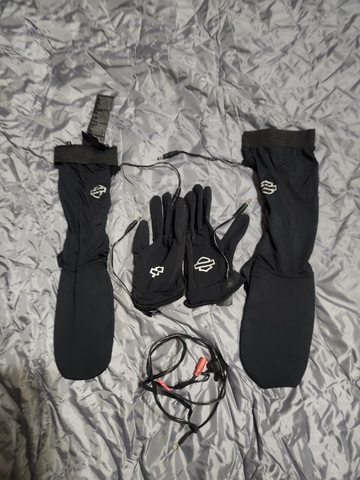 Harley-Davidson mens heated jacket, bottoms, glove liners,socks and 12v battery harness. 3 adjustable settings size 2xl. Like new only worn once.