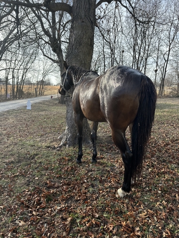 Meet "Storm Cruz" a 5yo thoroughbred Gelding Cruz stands 16HH and weighs a good 1,200lbs. He's is a hefty boy. Cruz was a Kill pen save back in late 2023, and he's come a long way. At first he had a hard time trusting anyone, now he's the sweetest soul.