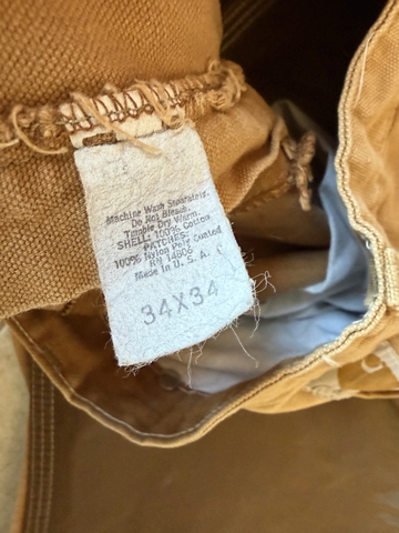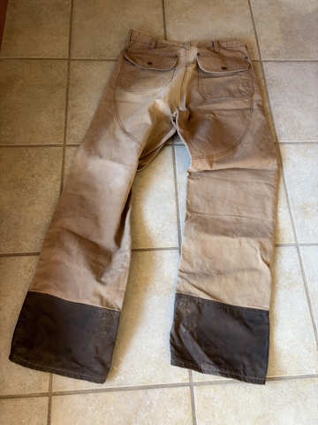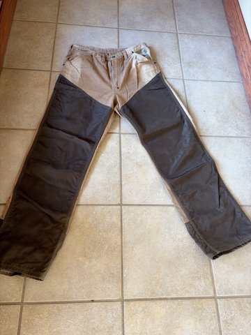 Lightly used, durable Carhartt trouser made from high-quality canvas. Designed specifically for upland bird hunting. Four pocket design with 7 heavy belt loops. Ruggedly stylish tan and brown color scheme. Durable snap front button with zipper fly, and puncture resistant overlays. These distressed, sun-kissed trousers have many stories to tell. Let them be the focal point of your next hunting adventure. Size34x34 but FIT more like a 32x34.
