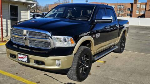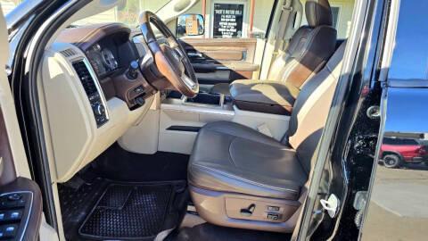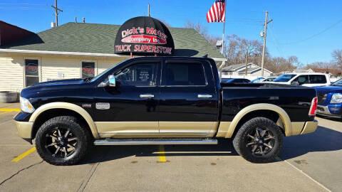 2014 RAM 1500 CREW LARAMIE LONGHORN 4WD 5.7L V8- PWR HEATED-COOLED LEATHER- PWR SUNROOF- REMOTE START- HEATED REAR SEATS- HEATED STR WHEEL- DUAL CLIMATE- SIRIUSXM RADIO- PREMIUM STEREO- CD PLAYER- BACKUP CAMERA- PARKING AID- BLUETOOTH- RUNNING BOARDS- PWR SLIDING REAR WINDOW- SPRAY IN BEDLINER- FOG LIGHTS- TRAILER BRAKE CONTROL- ALLOY WHEELS- TOW PKG! STOP BY, OR CALL 308-384-2554 ASK FOR DAN! SALE PRICE $23,899 108K MILES! LIFETIME POWERTRAIN WARRANTY INCLUDED! Visit dicksmotorcompany.com
