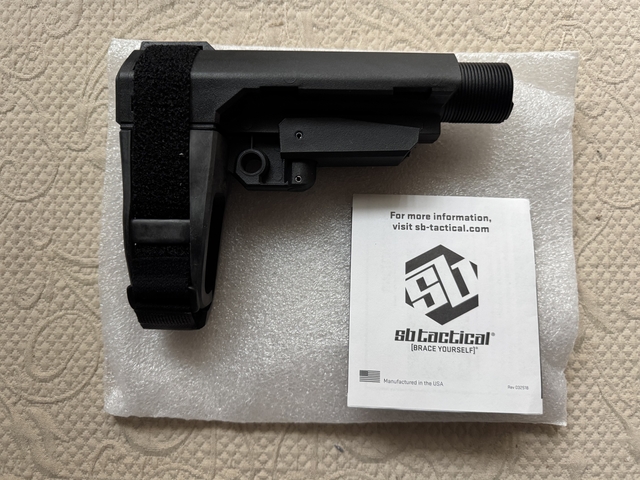 This is a new SBA3 brace with mil-spec receiver extension tube. I bought it then decided to take a different route with my build.$60 CASH ONLY. In-person transaction only, in Hays.