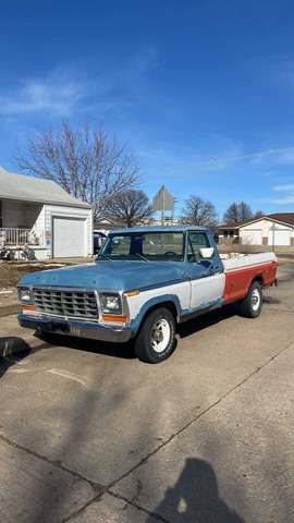 1979 Ford F150 2WD long bed with a 3/4 ton rear axle with helper leafs that previous owner installed it has the 300 inline six with a four speed manual transmission it runs and drives but has trouble starting because of the head gasket but I can get it to start and drive by pushing it in neutral and popping it in gear the truck has duel fuel tanks but only 1 works it needs a head gasket and the radiator has a couple of pinhole leaks that can be fixed it had a flatbed that the previous owner took off so I put its current bed on, I also put new spark plugs and spark plug wires on it truck is sold as is I would consider trading for a OBS Chevy/GMC or another vehicle let me know what you have CLEAN KANSAS TITLE $2000 will not go any lower than that it’s a solid Kansas truck bring a trailer