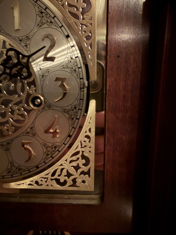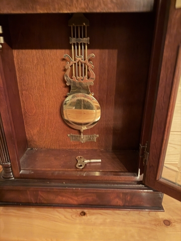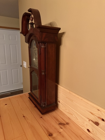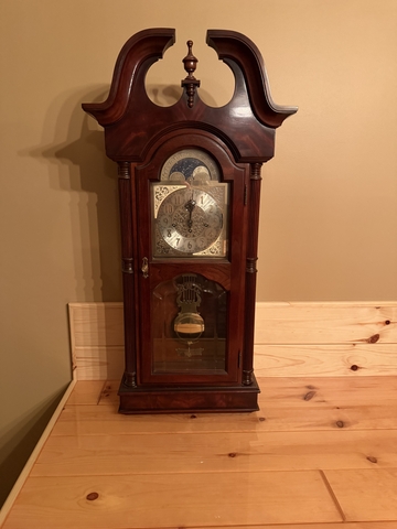 36" tall and 18" wide Sligh Wall Clock - Model # 0715-1-AN. Works, needs wound every other day. 3 different chimes plus silent. Made in 1991. Registration number - 420-105-6507A.