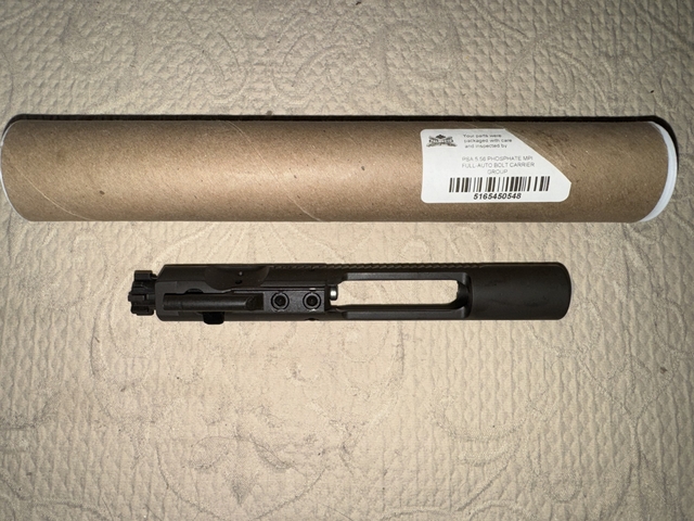 NEW Palmetto State AR-15 (.223/5.56) BCG. Been in the tube, never used. Found in my stash--selling for CASH. $75 FIRM. In-person only, in Hays.