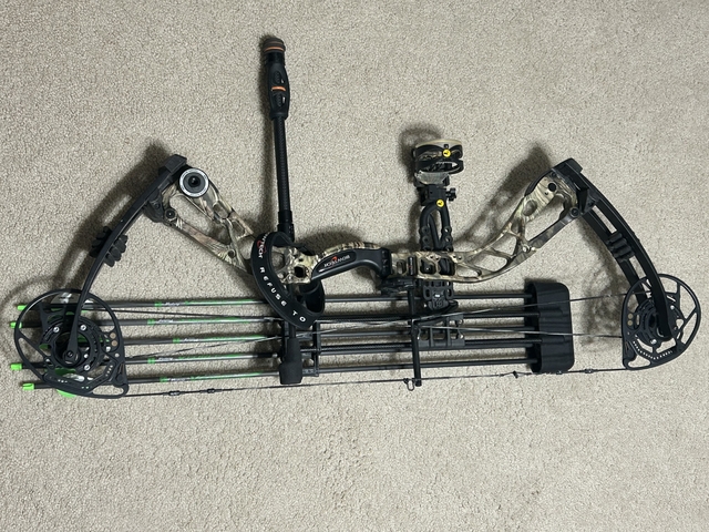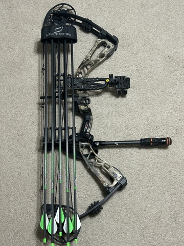 Comes ready to hunt with Victory V-Force arrows with 100 grain broadheads, Trophy Ridge 5 pin bow sight, Trophy Ridge 12" Stabilizer, whisker biscuit arrow rest, and Octane 5 arrow quiver.
