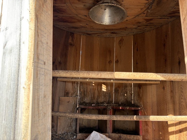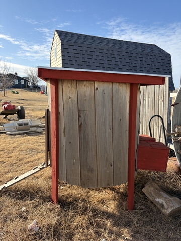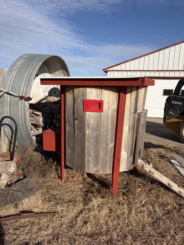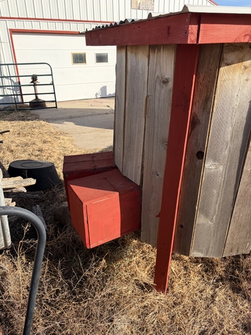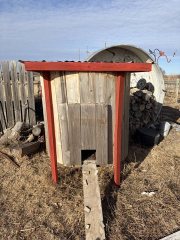 Get those chickens a shelter they deserve. Well built heavy duty coop. Small door for entry with big door for easy clean out. Also has easy access nesting boxes from the outside. There is also a heat lamp inside for those frigid nights. Dimensions are 4.5'x4.5x6'. It's a great coop. Asking 275obo