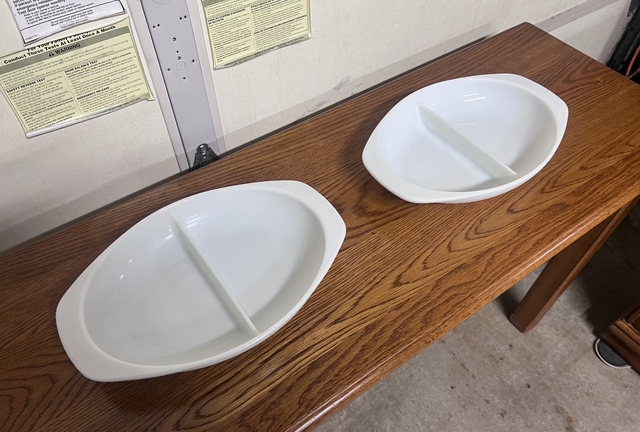 I have (2) Vintage Pyrex Opal Divided Serving Dishes in very good condition. Measurements are 13 1/2” Wide, 8 1/2” Deep. SELLING INDIVIDUALLY!! (NO HOLDS)(No Deliveries)(CASH ONLY) LOCATED IN HAYS, Ks