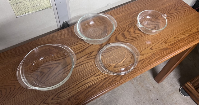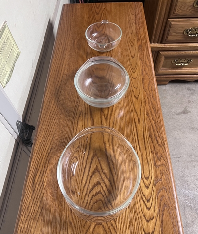 Have a 3 pc Set of Vintage Pyrex Nesting Bowls (LID NOT INCLUDED)These have been used and have normal wear, but have no cracks or chips. Measurements are (1)-8” Diameter, (1)-7” Diameter, (1)-5 1/2” Diameter. (NO HOLDS)(No Deliveries)(CASH ONLY) LOCATED IN HAYS, KS