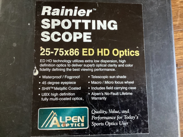 For Sale, Top of the line spotting scope (Alpen Ranier 25-75x86) ED HD Optics,