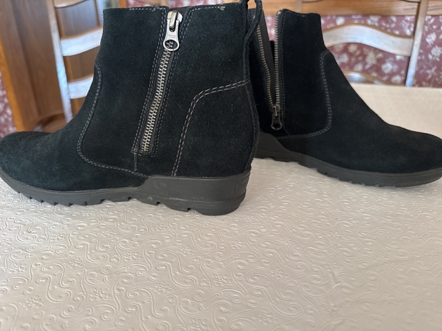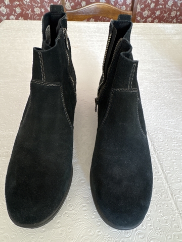 Black suede Evie Zip Wedge Chelsie boot size 9.5. In excellent good used condition. Only wore couple of time. Zippers are in working condition