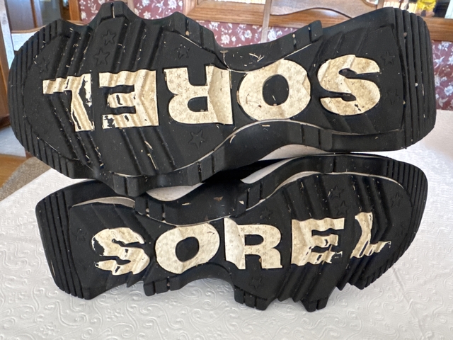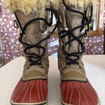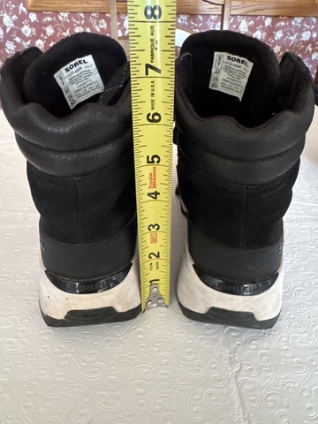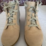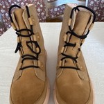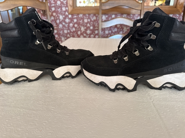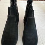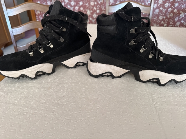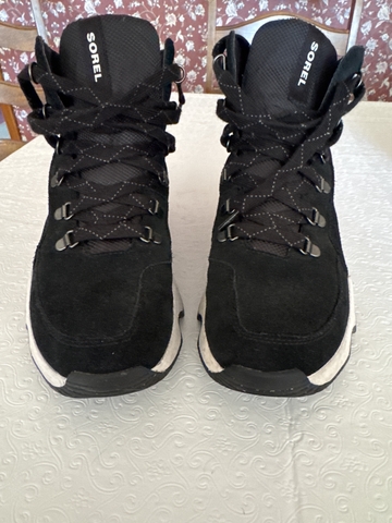 Black suede hiking boots that look similiar to a high top tennis shoe. Size 9. These have been worn a few times not often. Have good traction. These are in very good condition.