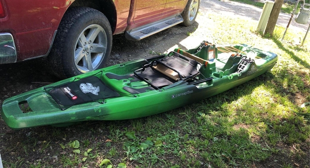 This has been an amazing Kayak, Comes with Perception Saddle Bag, Life Vest, and Paddle. I added an access to the inside for storage.