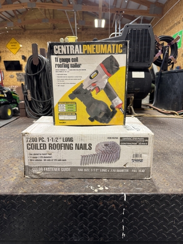 Central pneumatic roof nailer new inbox With box of nails. Located in Phillipsburg, Kansas