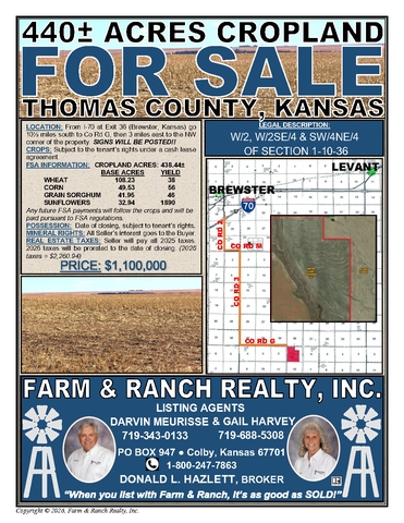 440± ACRES CROPLAND - THOMAS COUNTY, KS