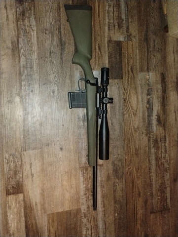 Howa 1500 in .308 winchester, set up to take p mags, have factory floorplate as well. 20" threaded heavy barrel, nikko stirling 4-16x44 scope, hogue stock. Took this on trade, dont really shoot .308 much. 800 cash, may consider other rifle trades. Thanks.