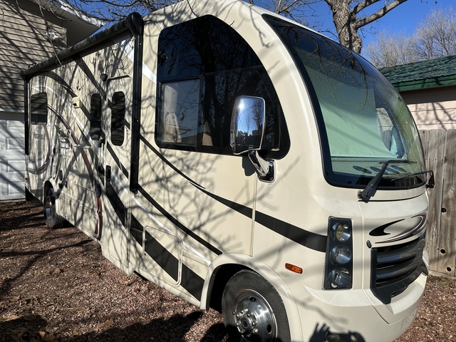 Easy to drive and park for a Class A, with side cameras and a large front window.
