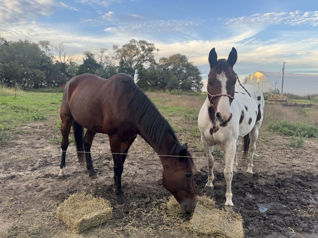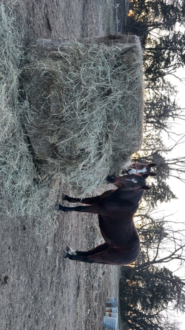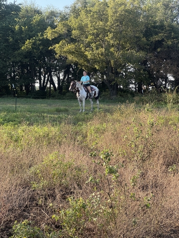 13 year old, intermediate, 14.3/15hh. Stocky build. Needs more rides on him and he'll be a great horse. Spooky sometimes, not spooky other times. Rides beautifully, saddles great, takes a bit, rides great, lunges both ways. Just needs more rides and some desensitizing. Free fed prairie hay and 6 pounds of grain per day.